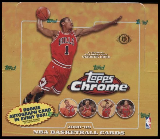 Box mit Basketball Sammelkarten der Serie „2008-09 Topps Chrome“.