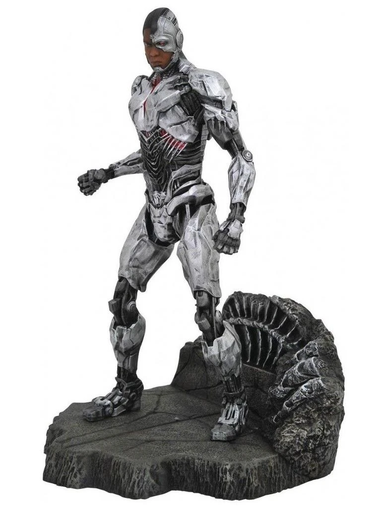 Hochwertige und perfekt akzentuierte Diamond Select Statue von Cyborg aus dem Kino-Blockbuster Justice League (2017).