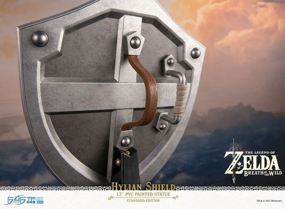 Das legendär ikonische Schild von Link aus dem Spiel „The Legend Of Zelda: Breath Of The Wild“, herausgebracht von First 4 Figures.