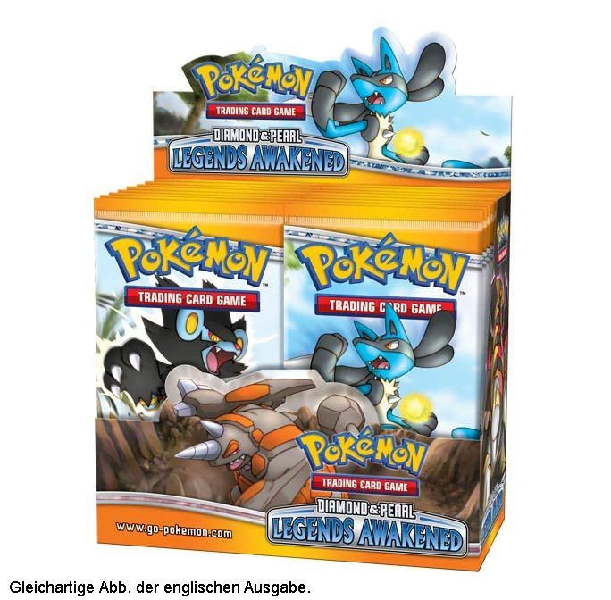 Herstellerversiegeltes Boosterdisplay mit Pokémon Sammelkarten der Serie Erwachte Legenden in Deutsch.