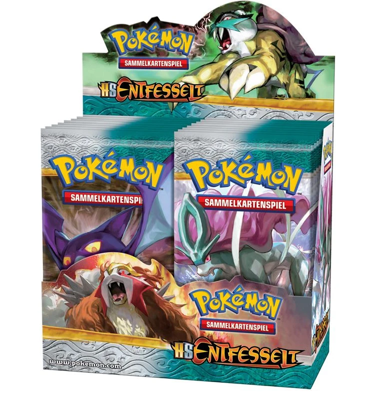 Komplettes Display mit Booster der Pokemon Serie HeartGold & SoulSilver 2 Entfesselt in Deutsch. Enthält 36 Booster a 10 Pokémon HG&SS Entfesselt Sammelkarten.
