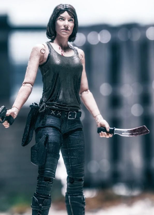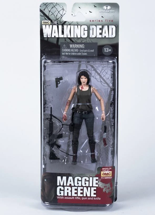 McFarlane Actionfigur Serie 5 von Maggie Greene aus der erfolgreichen Horror-TV-Serie The Walking Dead. Die bewegliche Figur von Maggie kommt mit Messer inkl. Messerscheide, Pistole und Sturmgewehr.