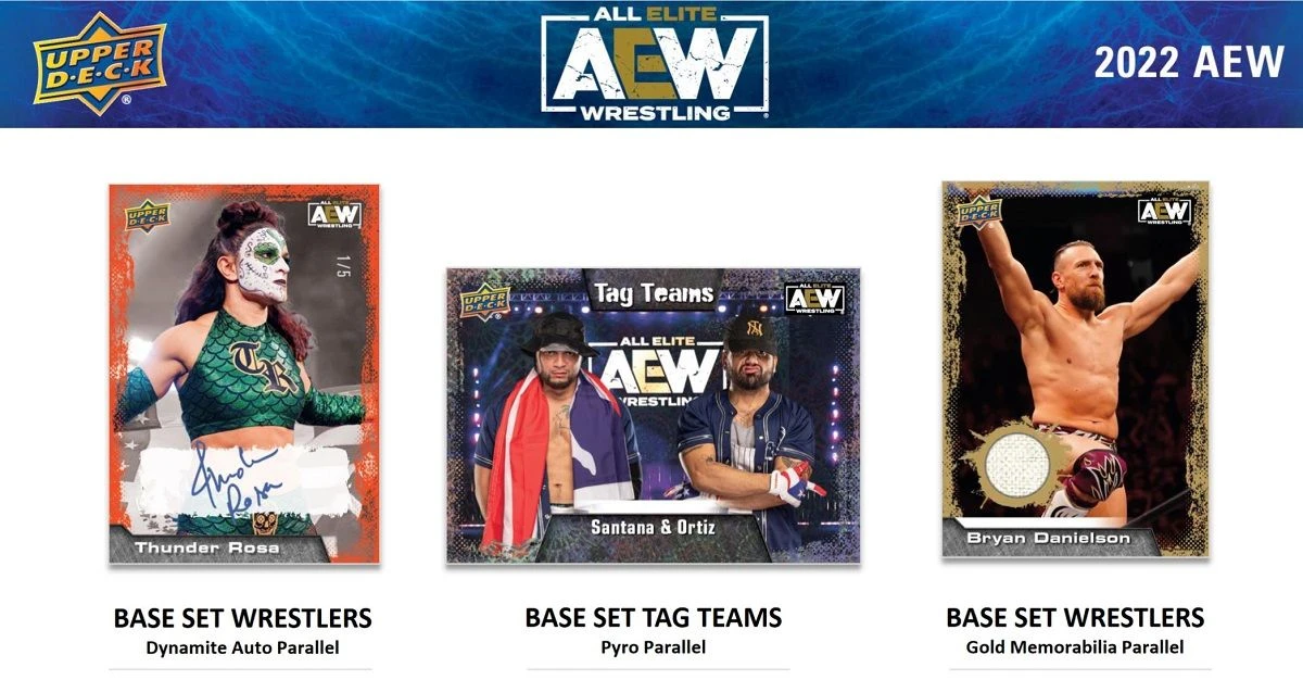 Die Ausgabe 2022 enthält ein Basisset mit 100 Karten, das aus drei Untersets besteht – Wrestler, Tag Teams und Crew – und präsentiert alle Top-Wrestler in AEW von heute: „Hangman“ Adam Page, Dr. Britt Baker DMD, Jade Cargill (TBS-Champion*), Adam Cole, Tay Conti, Bryan Danielson, FTR, Sammy Guevara, Chris Jericho, Jurassic Express, Jon Moxley, Kenny Omega, CM Punk (World Champion*), Thunder Rosa (Weltmeisterin der Frauen*), Nyla Rose, Scorpio Sky (TNT-Champion*), Kris Statlander, Sting, Wardlow, Young Bucks (World Tag Team Champions*) und viele mehr, die von Wrestling-Fans auf der ganzen Welt geschätzt werden!